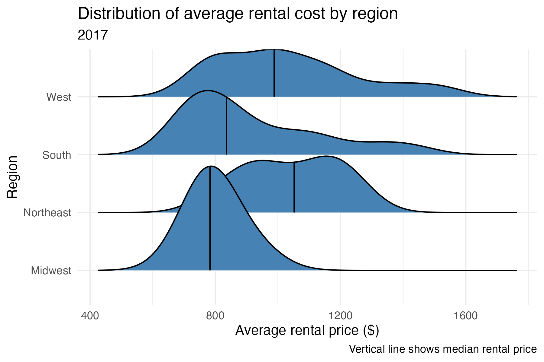 Using the untidy data set us_rent_income, from the package tidyr to re-create the plot below. Pay attention to re-creating exactly all aspects of the plot, e.g. axes, labels, capitalization etc.