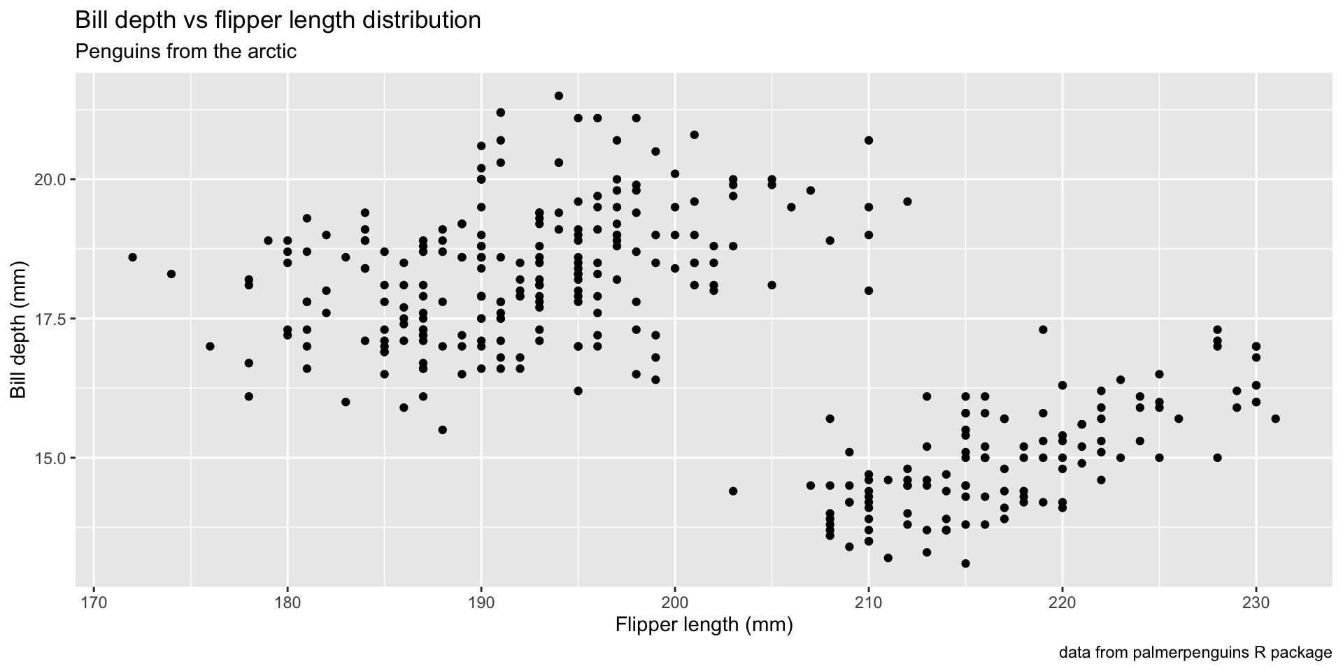 title = "Flipper length vs bill depth")