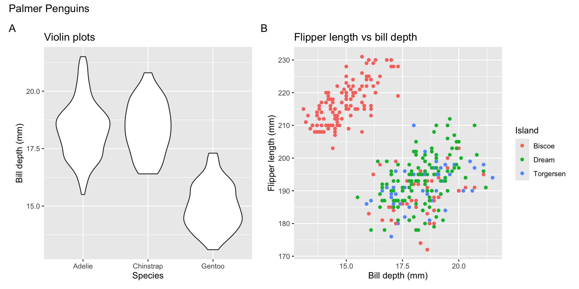 labs(x = "Species", y = "Bill depth (mm)",