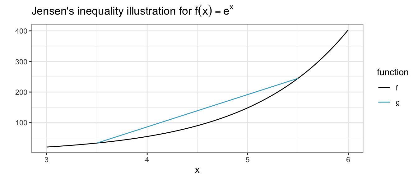 \[ f(\alpha x + (1 - \alpha) y) \leq \alpha f(x) + (1-\alpha) f(y), \ \ \alpha \in [0, 1] \]